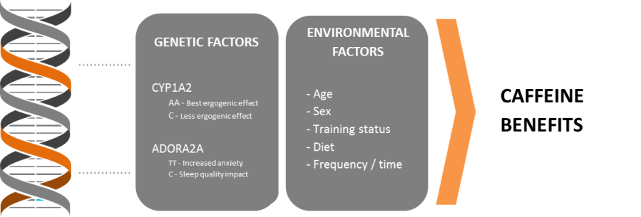 Secondo – La nostra genetica, perché ciascuno di noi ha una genetica differente che determina la modalità in cui viene metabolizzata tale sostanza. E’ stato dimostrato che la variazione di due geni, chiamati CYP1A2 e ADORA2A è in grado di influenzare in positivo o negativo gli effetti della caffeina.